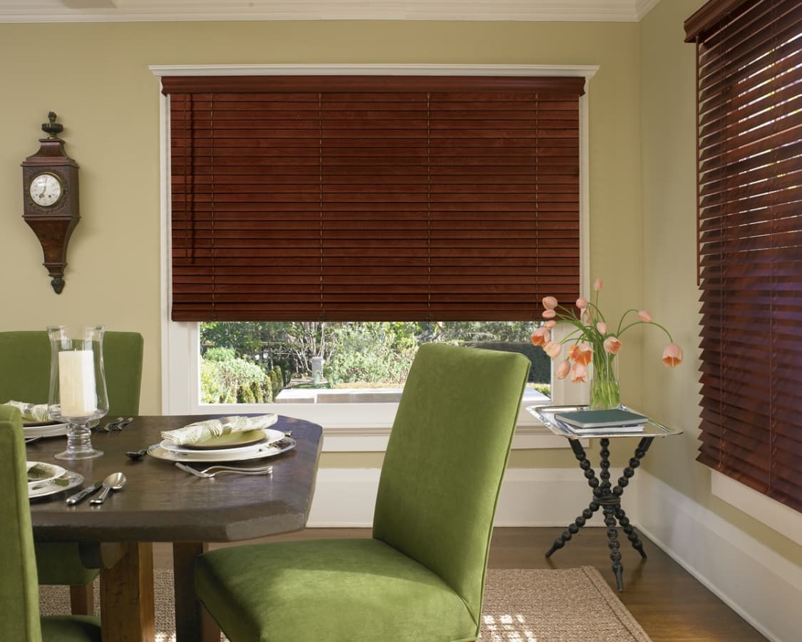- Классический стиль. В классике серые деревянные жалюзи могут служить стильным акцентом, сочетаясь с яркими цветами стен или мебели, такими как синий, бирюзовый, зеленый или розовый. Здесь их можно комбинировать с традиционными шторами из плотных тканей для создания более элегантного и многослойного оконного декора.